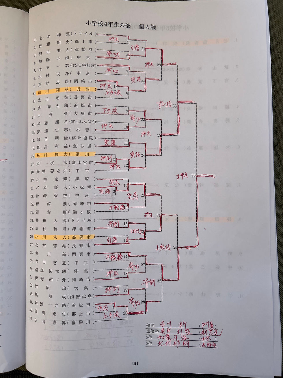 富山県からは、福光SC5人、呉羽道場10人、高岡市相撲教室9人、朝日丘相撲倶楽部2人、滑川相撲クラブ8人の合計34人の小中学生が参加しています。